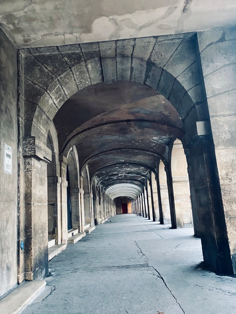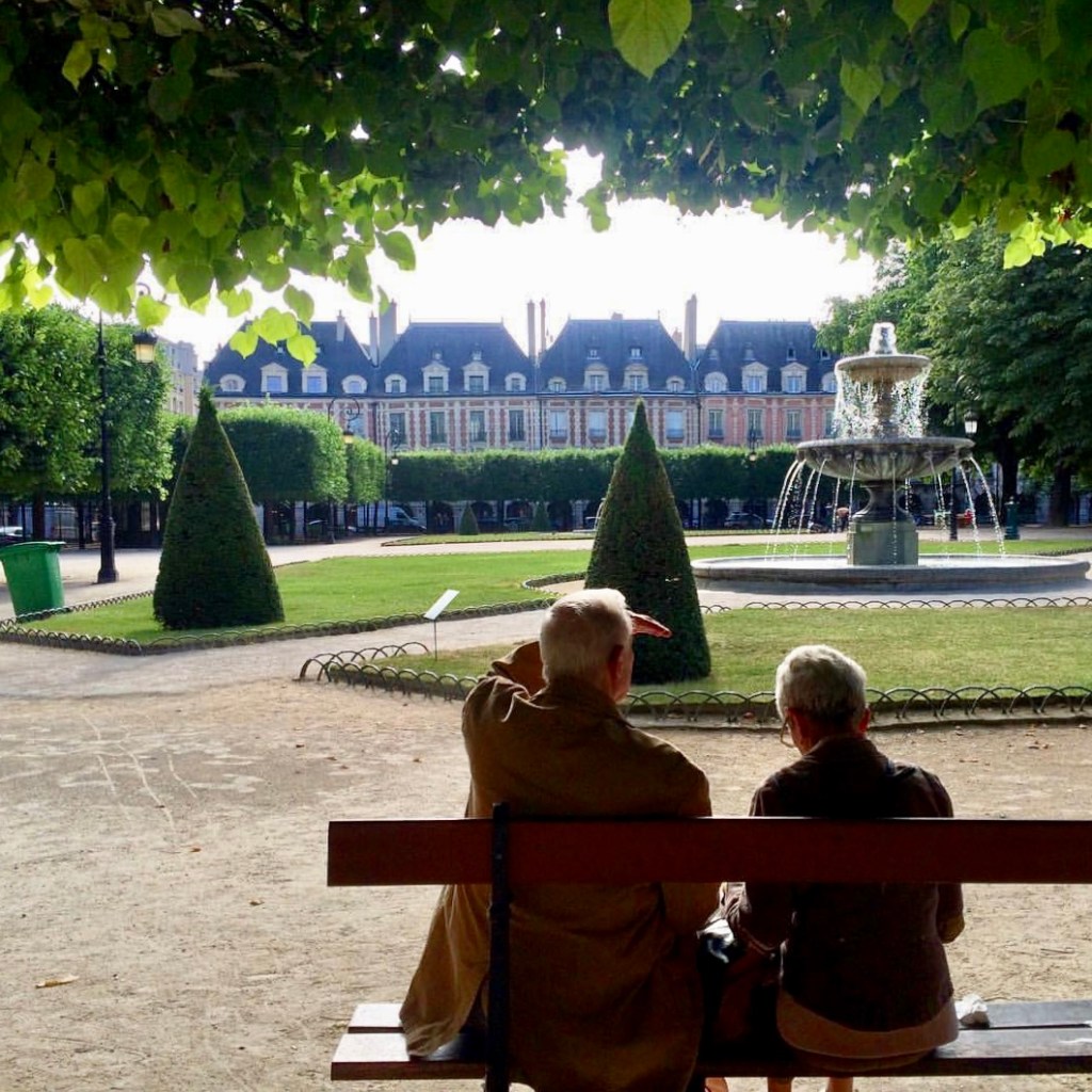 La place des Vosges è uno dei miei giardini preferiti, poiché oltre ad avere delle panchine confortevoli e delle aiuole ben curate, gode di un pratico portico di pietra che corre lungo i confini, molto pratico in caso di maltempo improvviso.