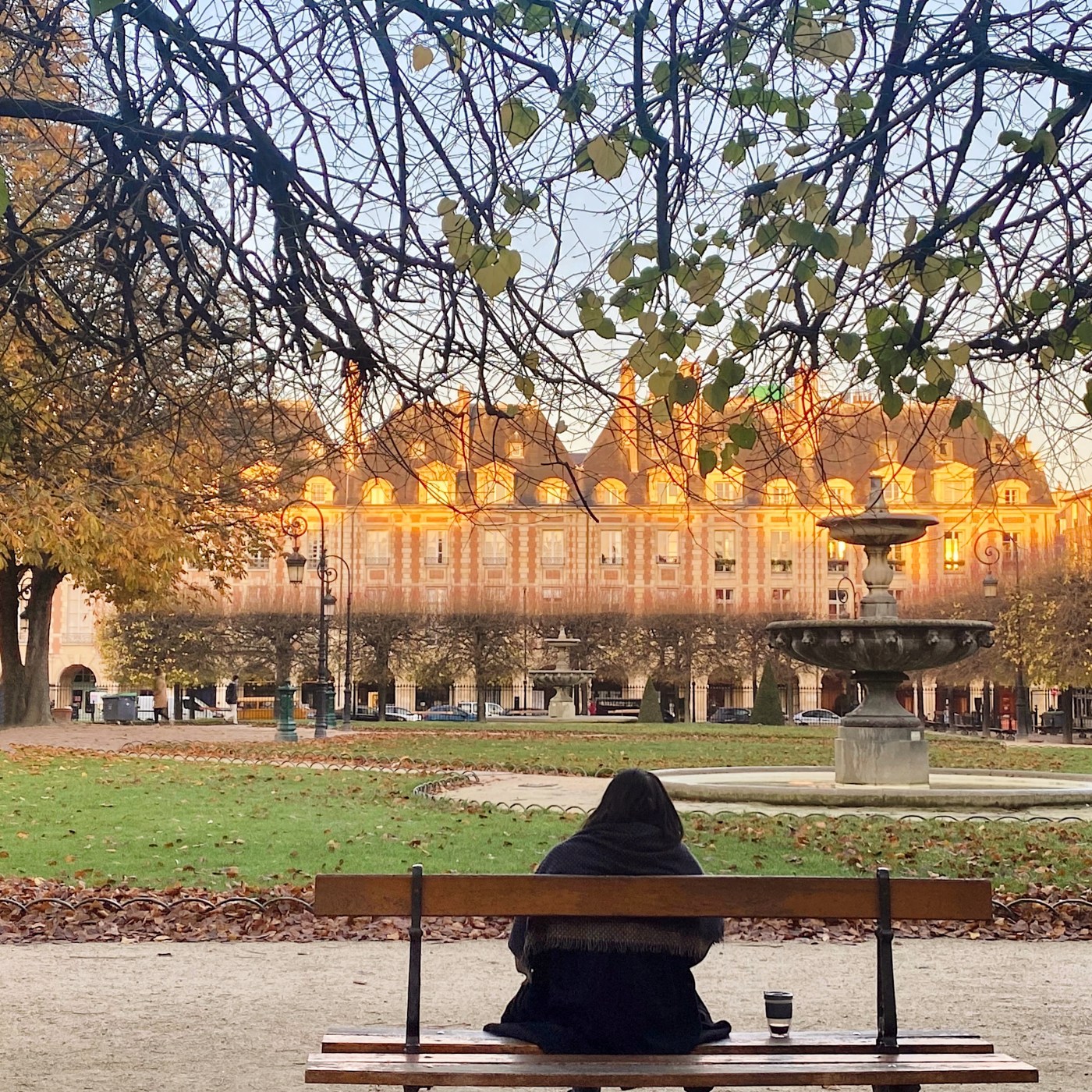 La place des Vosges è uno dei miei giardini preferiti, poiché oltre ad avere delle panchine confortevoli e delle aiuole ben curate, gode di un pratico portico di pietra che corre lungo i confini, molto pratico in caso di maltempo improvviso.
